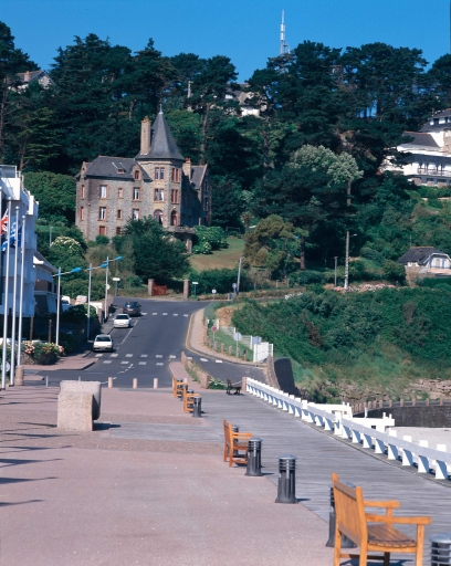 Perros-Guirec : le front de mer de Trestrignel et villa Les Korrigans construite à partir de 1928 (Henri Menet architecte).Immatriculation
