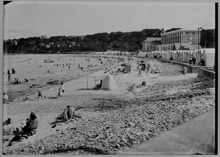 La plage de Trestraou, tirage d'après négatif sur verre par Hamon-Trémeur, 2ème quart du 20ème siècle (AD 35)Immatriculation