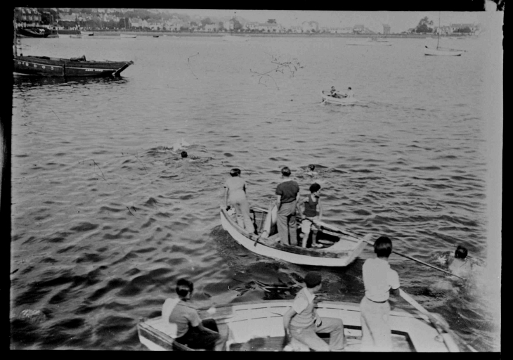 La chasse au canard lors des régates à Perros-Guirec, tirage d'après négatif sur verre par Hamon-Trémeur, 2e quart 20e siècle.Immatriculation