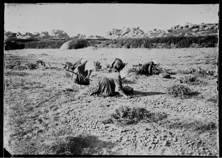 Ploumanac'h, paysannes au travail, tirage d'après négatif sur verre par Hamon-Trémeur, 2e quart 20e siècle.Immatriculation