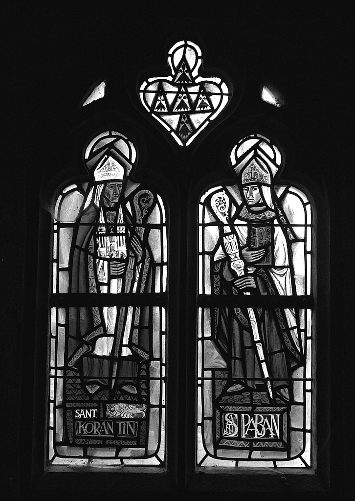 Verrière : crucifixion, verrière à personnages, église paroissiale Saint-Paban (Pouldreuzic),