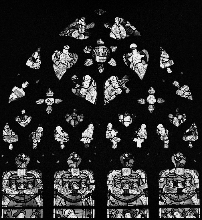 Verrière : les Docteurs de l'église, verrière à personnages, église paroissiale Saint-Annouarn (Peumérit),