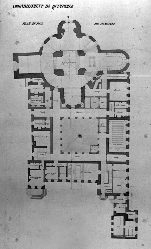 Plan du rez de chaussée par Joseph Bigot, 1835-1836 (A.D. Finistère, Atlas des bâtiments départementaux)Immatriculation