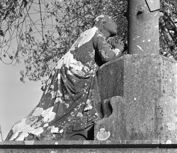 Croix de mission, détail de la statue de sainte Marie-Madeleine.Immatriculation