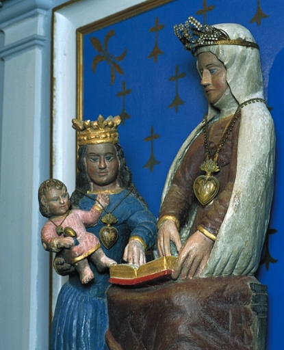 Statue : sainte Anne enseignant, la Vierge et l'Enfant, Ropenard (Maure-de-Bretagne fusionnée en Val d'Anast en 2017),