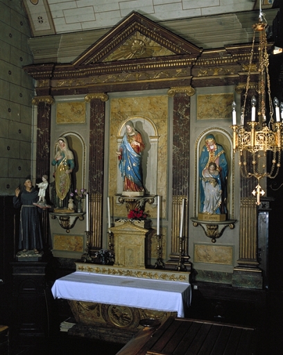 Ensemble de l'autel de sainte Geneviève : autel, gradin d'autel, tabernacle, retable, degré d'autel,