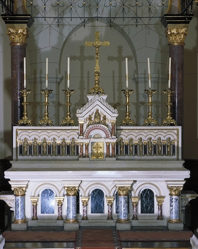 Ensemble du maître-autel : autel, ciborium, tabernacle, gradin d'autel, 2 degrés d'autel,