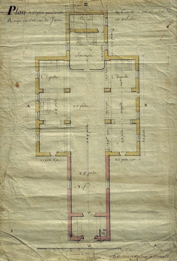 Plan de l'église dressé par l'ingénieur Garengeau, daté du 30 juin 1725Immatriculation