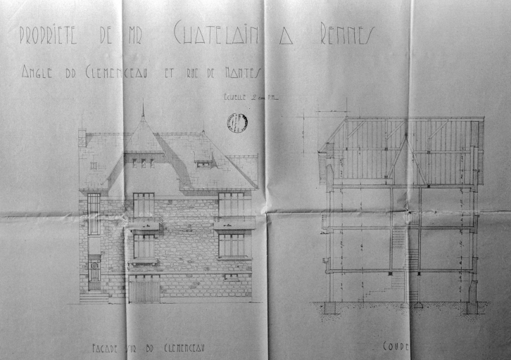 Façade sur le boulevard et coupe, 1936 (A. C. Rennes)Immatriculation