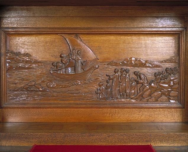 Détail du devant d'autel : l'arrivée de Saint ColombanImmatriculation
