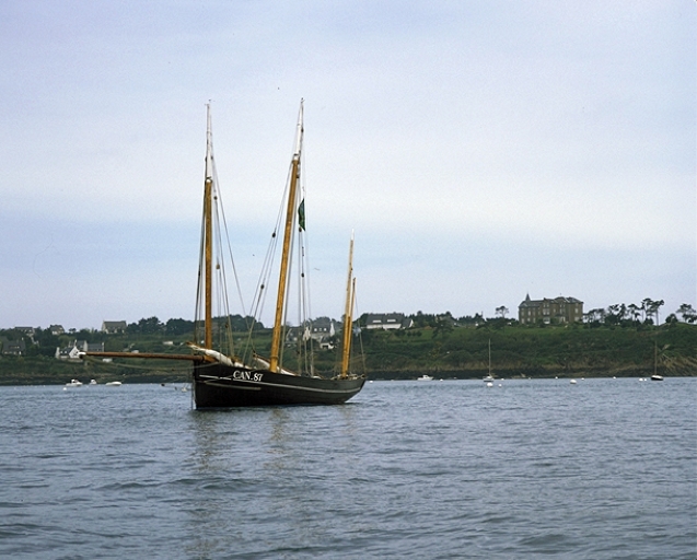 La Cancalaise (réplique de la Perle, 1905), fleuron de la flotte de bateau de travail français, mouillée dans l'anse de Port-MerImmatriculation