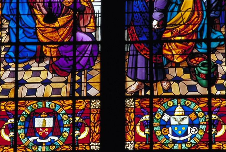 Verrière de la baie 102, la Cène : partie inférieure des 2 lancettesImmatriculation