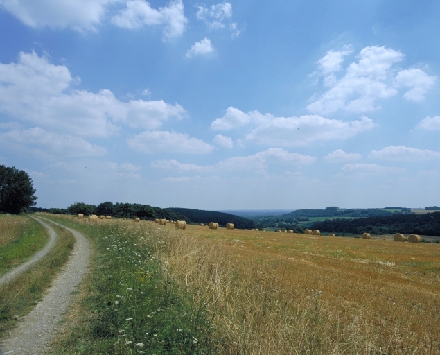 Vue de paysage : champ cultivé et chemin d'exploitationImmatriculation