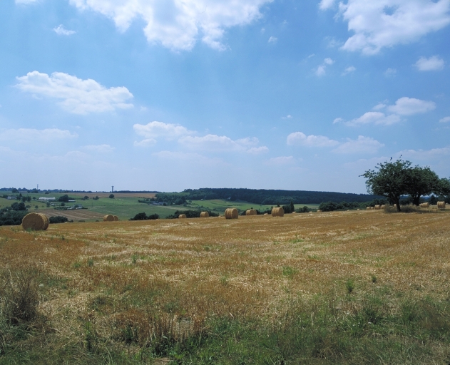 Vue de paysage : champ cultivé et chemin d'exploitationImmatriculation