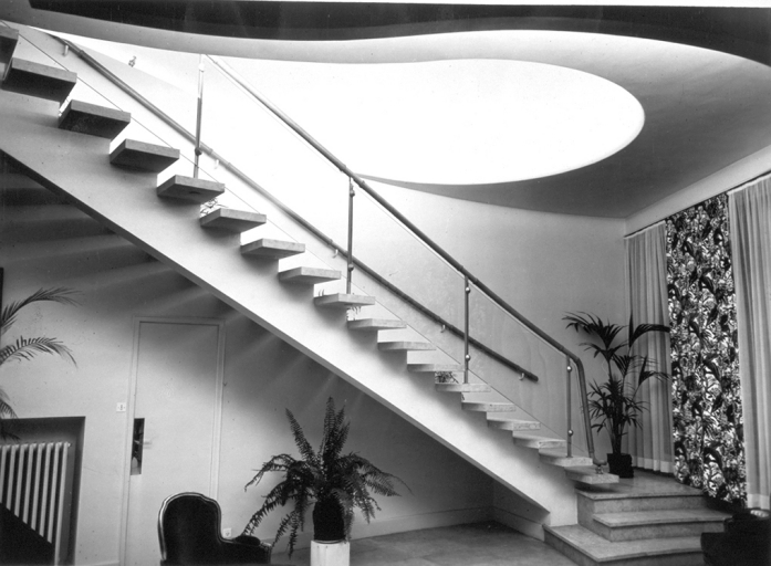 Vue de l'escalier, vers 1950 (A. P.)Immatriculation