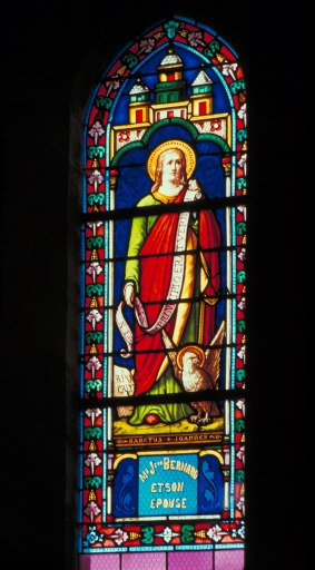 Ensemble des 8 verrières hautes du transept : saint Denis, sainte Agathe, saint Jean, Notre-Dame du Rosaire (?), saint Pierre, Notre-Dame de la Salette, saint Jacques le Mineur, Notre-Dame de Lourdes,