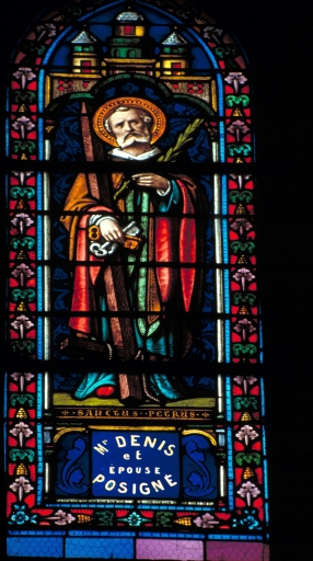 Ensemble des 8 verrières hautes du transept : saint Denis, sainte Agathe, saint Jean, Notre-Dame du Rosaire (?), saint Pierre, Notre-Dame de la Salette, saint Jacques le Mineur, Notre-Dame de Lourdes,