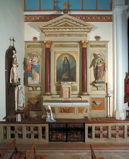 Ensemble de l'autel secondaire nord : degré d'autel, autel, 2 gradins d'autel, tabernacle, retable,