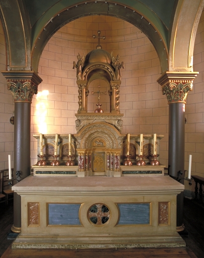 Ensemble du maître-autel : autel avec gradin d'autel, 2 degrés d'autel, baldaquin d'autel, tabernacle et exposition,