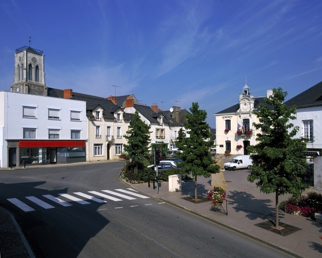 La place de la mairie, à l'arrivée de la route de Guipry : vue partielle sud-ouestImmatriculation