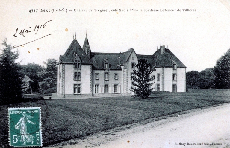 Carte postale du début du siècle présentant une vue sud du manoirImmatriculation