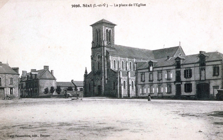 L'église vue depuis la place Charles Gaulle sur une carte postale ancienneImmatriculation
