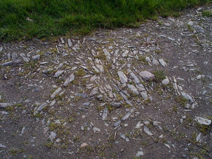 La Prungnais, vestige de pavage en schiste dans une cour de ferme : détailImmatriculation