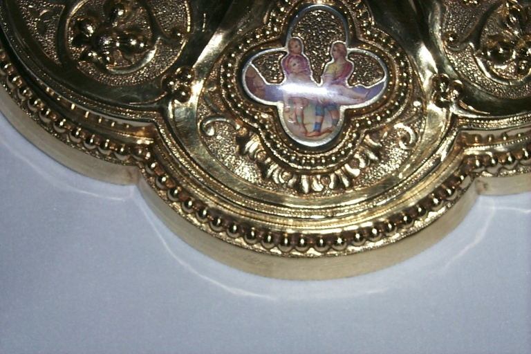 Détail d'un quadrilobe émaillé sur le pied du caliceImmatriculation