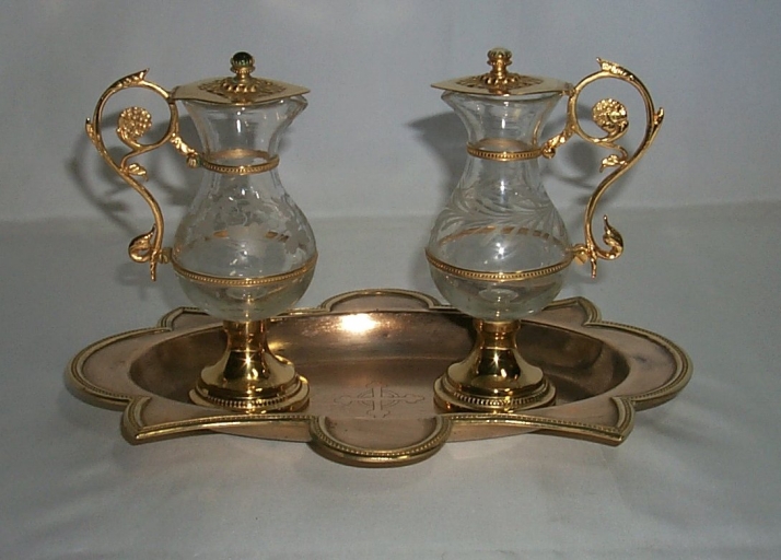Ensemble 7 d'un plateau à burettes et de 2 burettes,