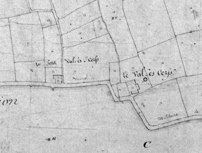 L'ancien domaine du Val-ès-Cerfs (sic) (cadastre de 1828)Immatriculation