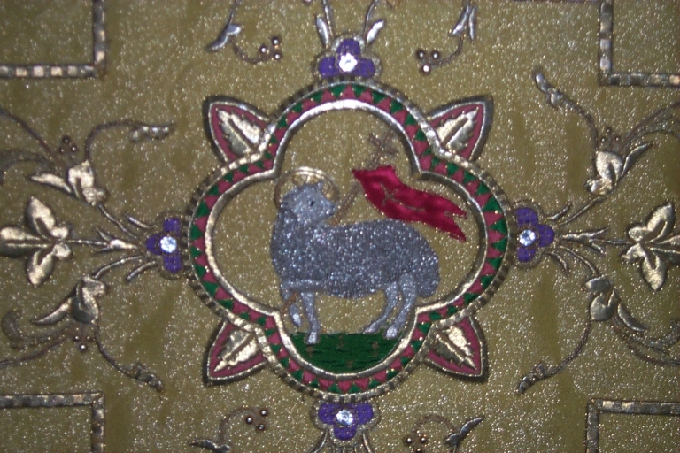 Ornement doré 3 : chasuble, étole, manipule, voile de calice,