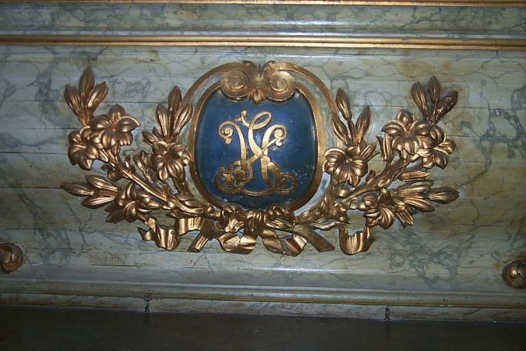 Ensemble de l'autel secondaire sud : autel, 2 gradins d'autel, tabernacle, retable, degré d'autel,