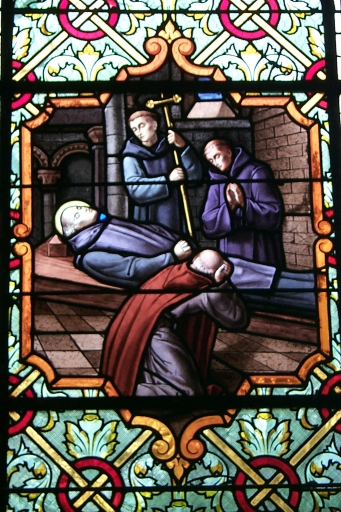 Verrière à personnages de la baie 6 : Mort de saint Benoît,