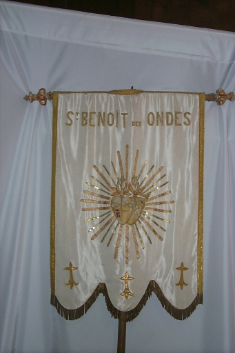 Bannière de procession : Immaculée Conception, coeurs enflammés,