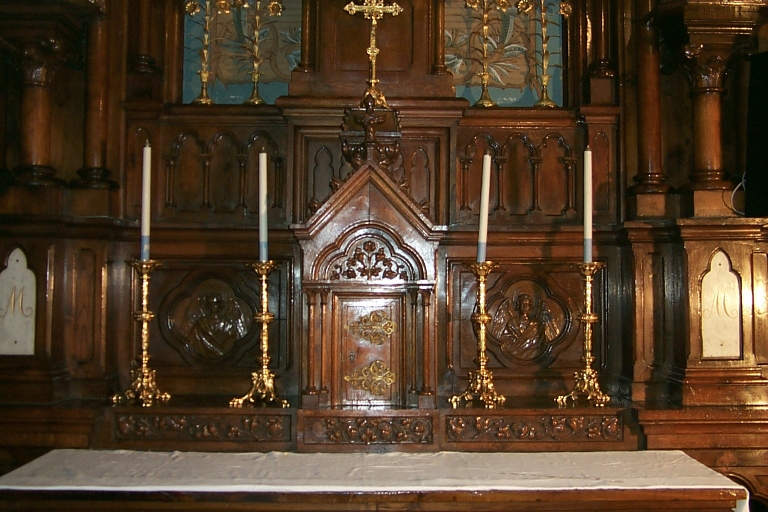Ensemble de l'autel de la Vierge : autel, retable, tabernacle, gradin, 2 degrés d'autel,