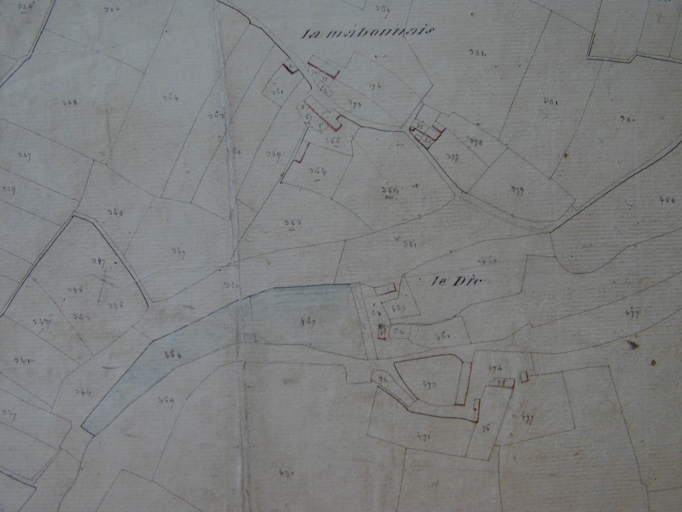 Plan de situation sur le cadastre 'napoléonien' ; logis en bas à droite sur l'imageImmatriculation