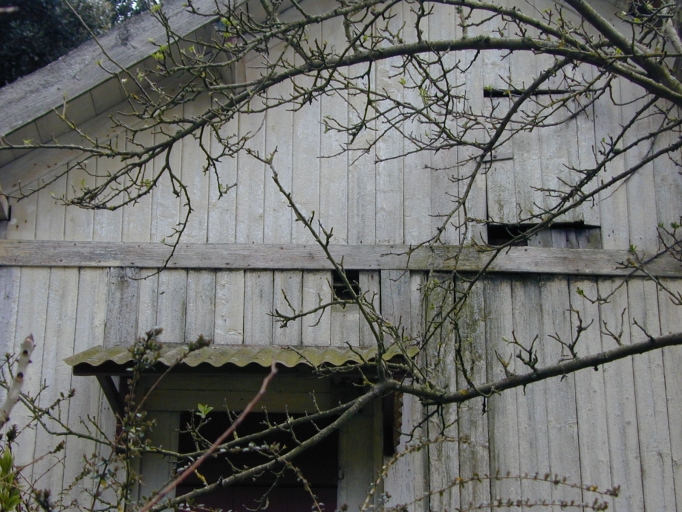 Détail : partie haute du pignon, trape d'accès au combleImmatriculation