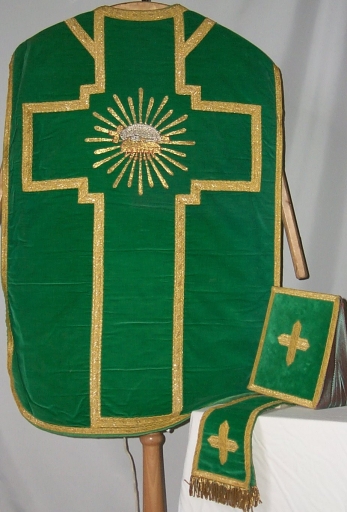 Ornement vert 1 : chasuble, étole, bourse du corporal, voile du calice,