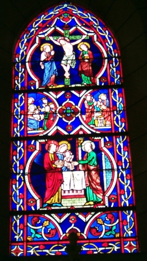 Verrière de la baie 1 : La vie de Jésus (vitrail archéologique),