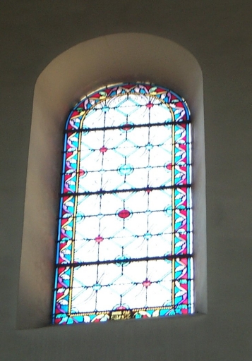 Ensemble des verrières décoratives du choeur et de la nef (baies 103, 104, 107 à 112),