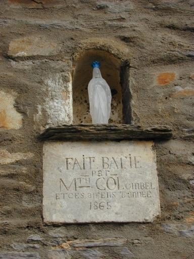 Détail : façade sud, inscription : 'FAIT BATI PAR Mth COLOMBEL ET CES ANFENS L'ANNÉE 1865'Immatriculation