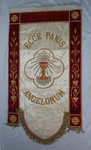 Bannière de procession : Immaculée Conception, Adoration du Saint-Sacrement,