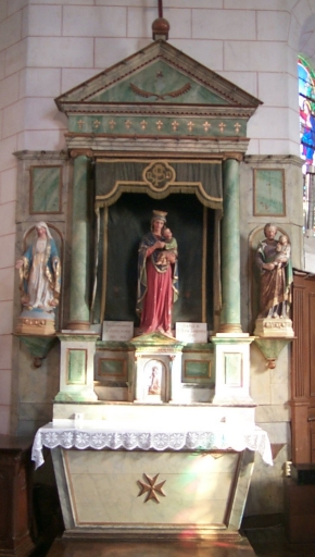 Ensemble de l'autel de la Vierge : autel, tabernacle, retable, degré d'autel, gradin d'autel,