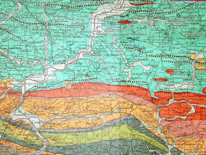 Le sous-sol de la commune ; extrait de la carte géologique détaillée de la FranceImmatriculation
