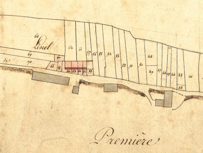 Vue de situation sur le cadastre de 1831 ; alignement en haut de l'imageImmatriculation