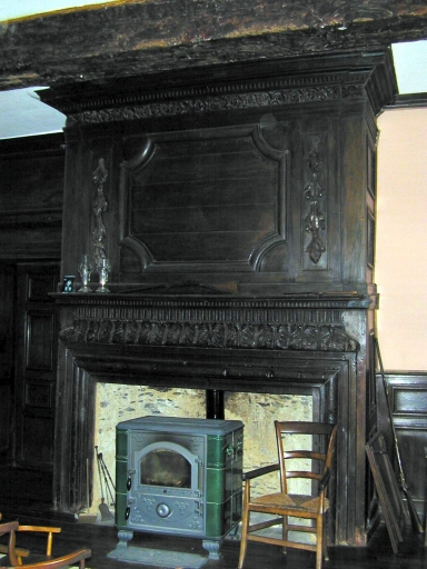 Détail : le logis, rez-de-chaussée, salle ouest, cheminée en bois, 1660-1670Immatriculation
