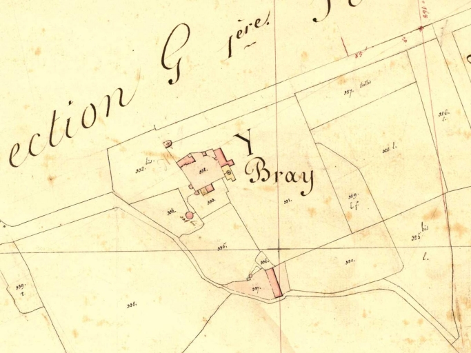 Vue de situation sur le cadastre de 1831 ; noter l'emplacement de la chapelle (en haut de l'image) et du pigeonnier (à gauche)Immatriculation