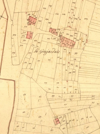 Vue de situation sur le cadastre de 1831 ; alignement à droite de l'imageImmatriculation