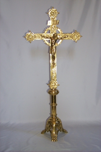 Garniture d'autel : 4 chandeliers d'autel, croix d'autel,