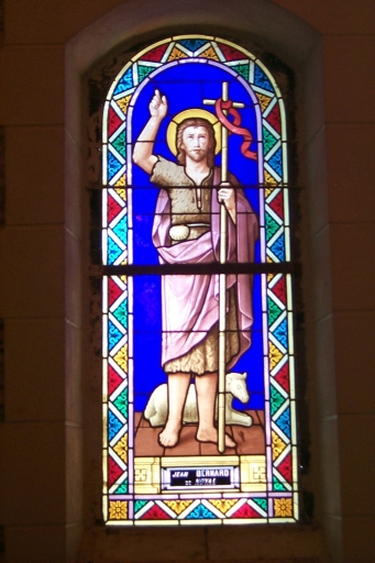 Ensemble de 4 verrières à personnages (baies 1 à 4) : Education de la Vierge, saint Joseph et l'Enfant, saint Jean-Baptiste, saint Pierre,
